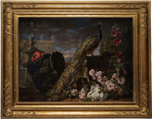 Павлин и кролики среди цветов мальвы (1680‐е — начало 1690‐х)